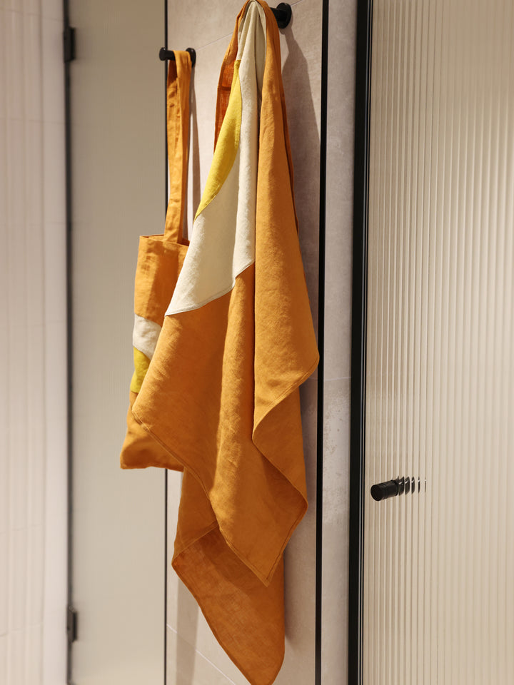 Sunset & Sunrise Hemp Linen Beach & Pool Blankets – Handmade, Two Sizes for Adults & Kids , Earth Tone Color Block